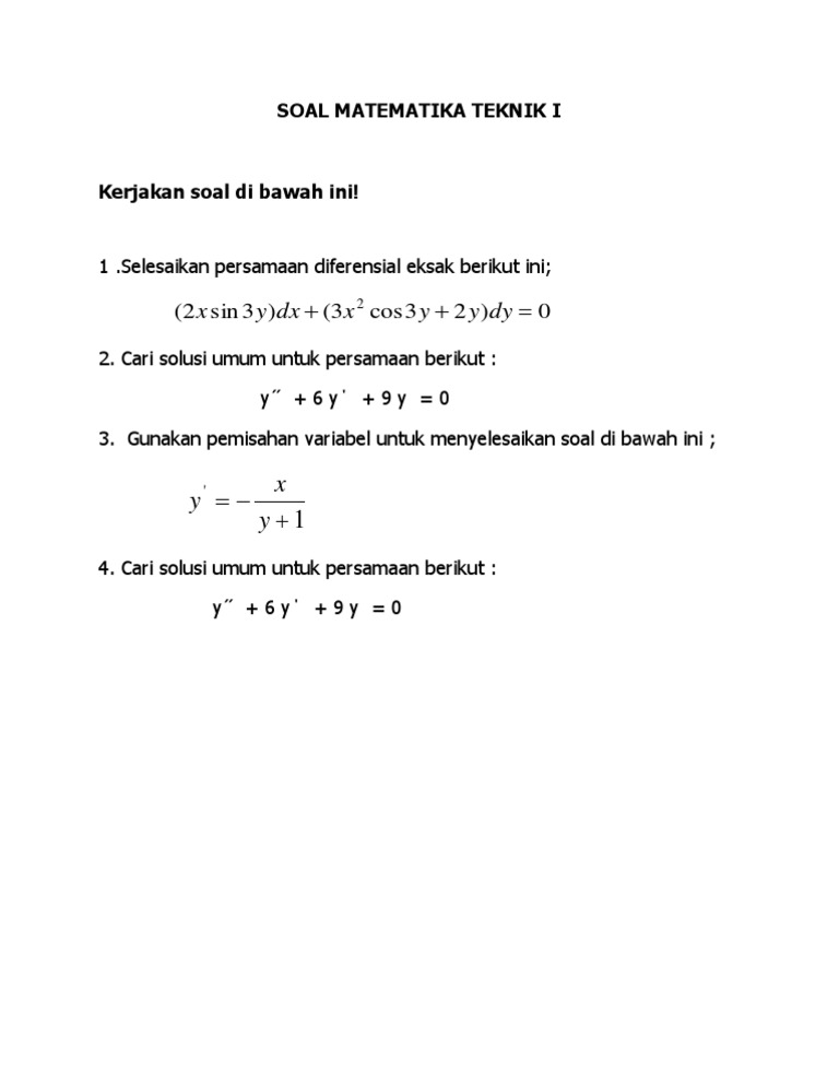 Contoh Soal Matematika Teknik : Soal Matematika Kelas 11 Semester 2 Tentang Turunan Fungsi Scribd Masnurul / Contoh soal ekonomi rekayasa 1.