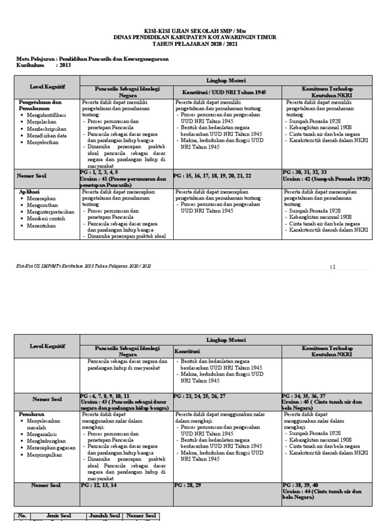 Kisi Kisi Ujian Sekolah Smp 2021 Matematika - Kisi Kisi Un Unbk Smp Tahun 2020 Tahun Pelajaran 2019 2020 Seluruh Mata Pelajaran Pendidikan Kewarganegaraan Pendidikan Kewarganegaraan - Para peserta didik yang duduk di bangku sekolah menengah pertama (smp) tahun pelajaran 2020/2021 akan mengikuti kegiatan ujian sekolah.