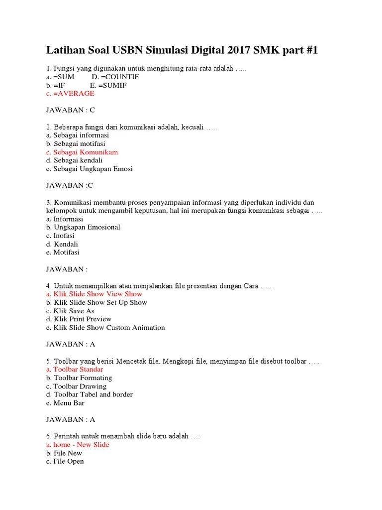 Latihan soal usbn simulasi digital 2017 smk part #1. Kami ingin membagikan contoh soal uas untuk simkomdig kelas x semester ganjil. Perangkat masukan yang berupa papan ketik, yang digunakan untuk memberikan masukan untuk diproses oleh cpu, adalah. Dalam komputer dikenal juga istilah cpu yang merupakan . Beli buku soal usbn sd online terdekat di jawa tengah berkualitas dengan harga murah terbaru.